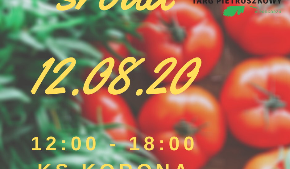 Aktualności Środa – 12.08.20 zmiana godzin otwarcia ( w sobotę 15.08.20 nieczynne) 2020-08-12 Zapraszamy od 12:00 do 18:00! Pamiętajcie, że w sobotę 15.08.20 Targ jest nieczynny (paczka...