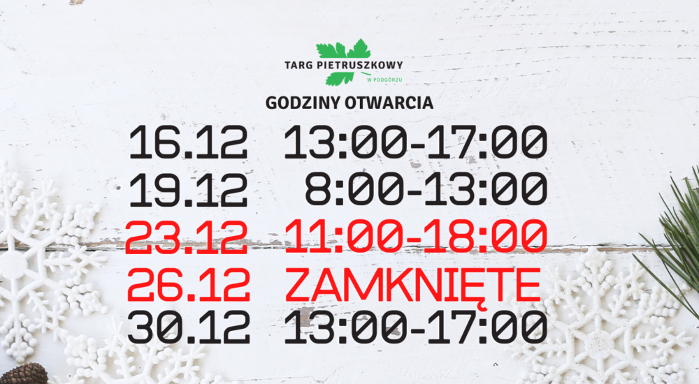 Porady Targ w grudniu 2020 2020-12-15 Zapraszamy Was na przedświąteczne targi. Zwróćcie uwagę, że 23.12.2020 r. w środę widzimy się...