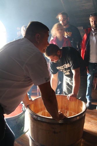 19 lipca wyruszyliśmy na drugą z serii mikrowakacji śladami dziedzictwa kulinarnego Małopolski i odwiedziliśmy bacówkę Krzysztofa Łasia (jego oscypki znajdziecie na stoisku Spółdzielni Gazdowie na targu). Pierwotnie miała to być wycieczka „Wiosenny Redyk”, ale z powodu powikłań wirusowych zrobił nam się z tego „letni” redyk (w cudzysłowie, bo redyki odbywają się dwa razy w roku – wiosną i jesienią). W Białce Tatrzańskiej, u stóp Kotelnicy, przywitał nas Krzysztof z rodziną (synowie poszli w jego ślady i również zajmują się wypasem owiec oraz produkcją serów) i ostry zapach dymu którym wędzi się oscypka. Nasi gospodarze poczekali z produkcją sera specjalnie na nas i na żywo mogliśmy zobaczyć jak ręcznie odciska się ser z „zaklagowanego” mleka, formuje kulę, nabija na drut i rękami ugniata we wrzecionowaty kształt, a następnie odciska wzorek za pomocą drewnianej formy. Później ser ląduje na dobę w solance, a następnie na specjalnej półeczce gdzie przez kolejne 2-3 dni wędzi się i nabiera charakterystycznego, złotego koloru. W samej bacówce trudno wytrzymać dłużej, bo dym szczypie w oczy, ale baca twierdzi, że „idzie się przyzwyczaić”.