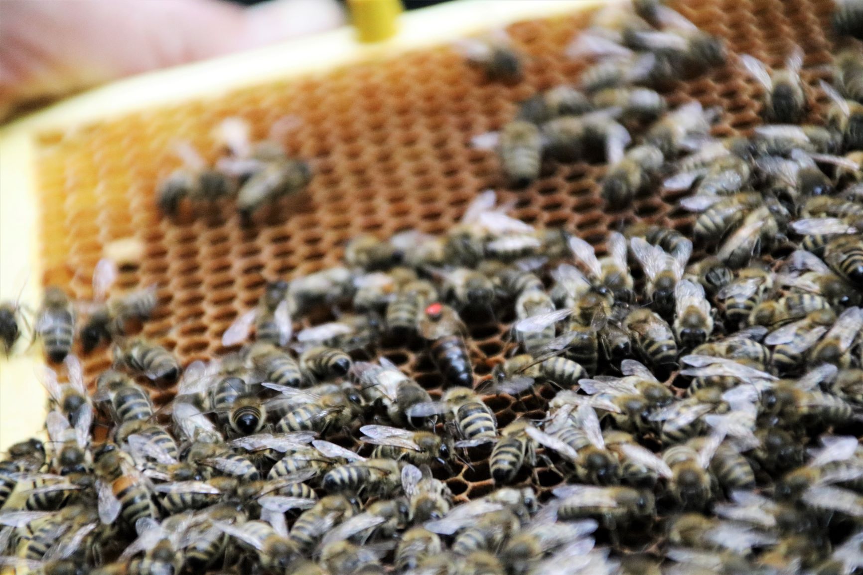 - Matkę pszczelą oznacza się kropką, żeby było ją łatwiej znaleźć