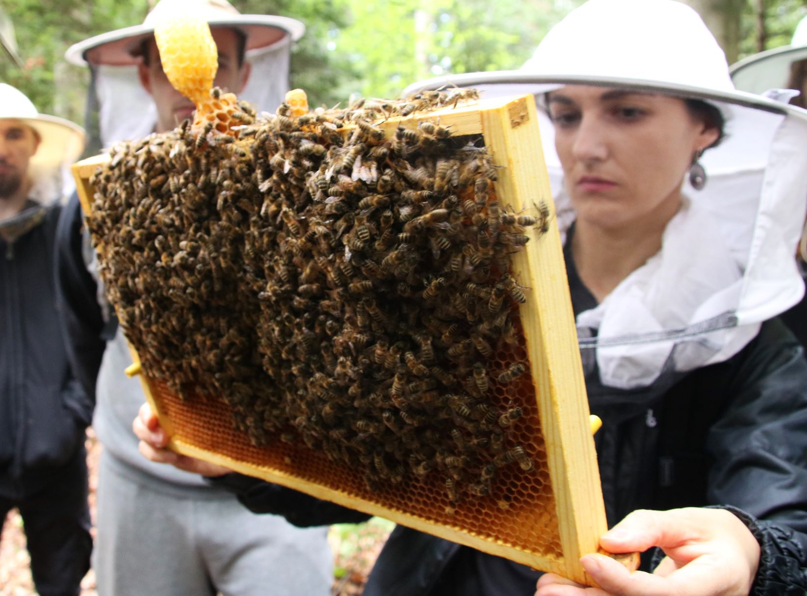 - W pszczelarskich kapeluszach wyglądamy jak grzyby. Tylko Mateusz „sauté” :)