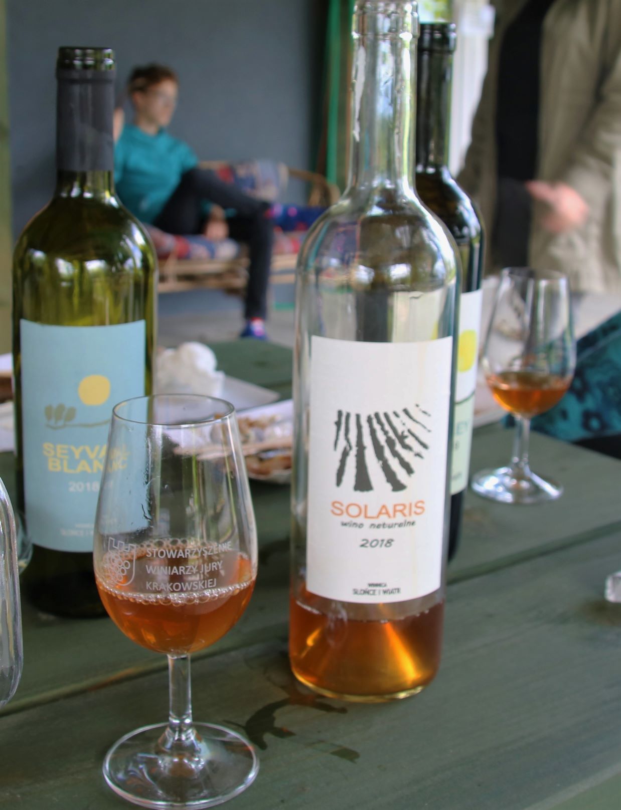 Kolejny przystanek to winnica Słońce i Wiatr w Smardzowicach po której oprowadzała nas właścicielka Katarzyna Fluder. Opowiadała o trudnościach i radościach wynikających z posiadania winnicy, znaczeniu położenia działki, szkodnikach (licznych!), które mogą atakować winorośl, nieprzewidywalnej pogodzie i odmianach hybrydowych winorośli, które zdecydowali się posadzić u siebie. Następnie przejechaliśmy kawałek dalej do winiarni, gdzie rozsiedliśmy się przy stołach na degustację – win i pstrąga, który dojechał do nas z Ojcowa (winnica graniczy z Ojcowskim Parkiem Narodowym, więc to wszystko po sąsiedzku). Byliśmy pod ogromnym wrażeniem wiedzy Kasi i smaku jej win (o naprawdę przystępnych cenach), a humory które dopisywały od rana zaczęły dopisywać nam jeszcze bardziej po kilku kieliszkach jurajskiego wina.