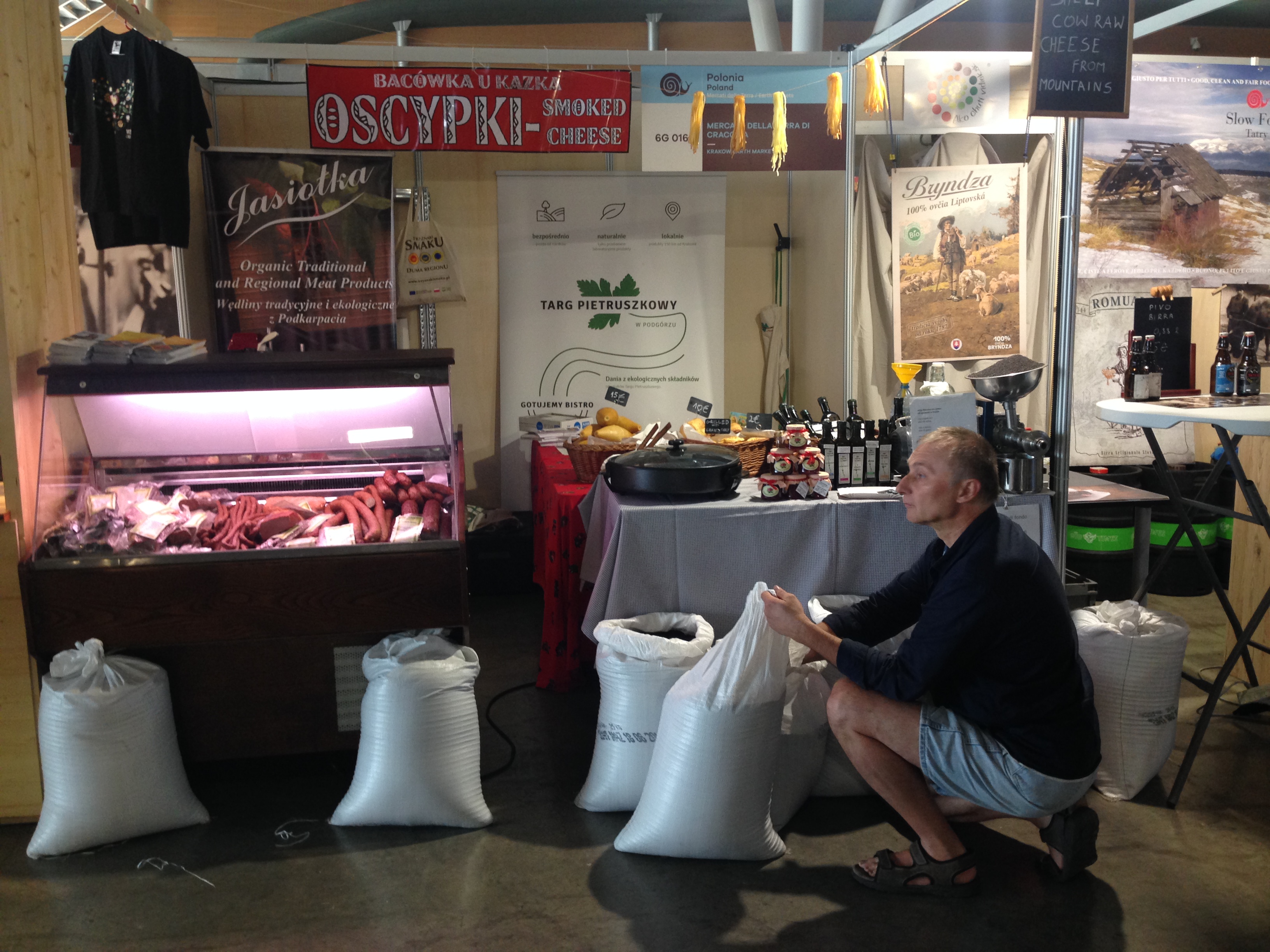 Targ Pietruszkowy należący do światowej sieci slowfoodowych Targów Ziemi (Earth Markets) dumnie reprezentował lokalną żywność z Małopolski i okolic jako jedyne stoisko z polskimi produktami, jesteśmy naprawdę dumni! Pan Stefan tłoczył na żywo olej rzepakowy, grilowaliśmy oscypki, przywieźliśmy przetwory z róży od Pani Anastazji, a zakład Jasiołka z Dukli sprzedawał swoje wędliny.